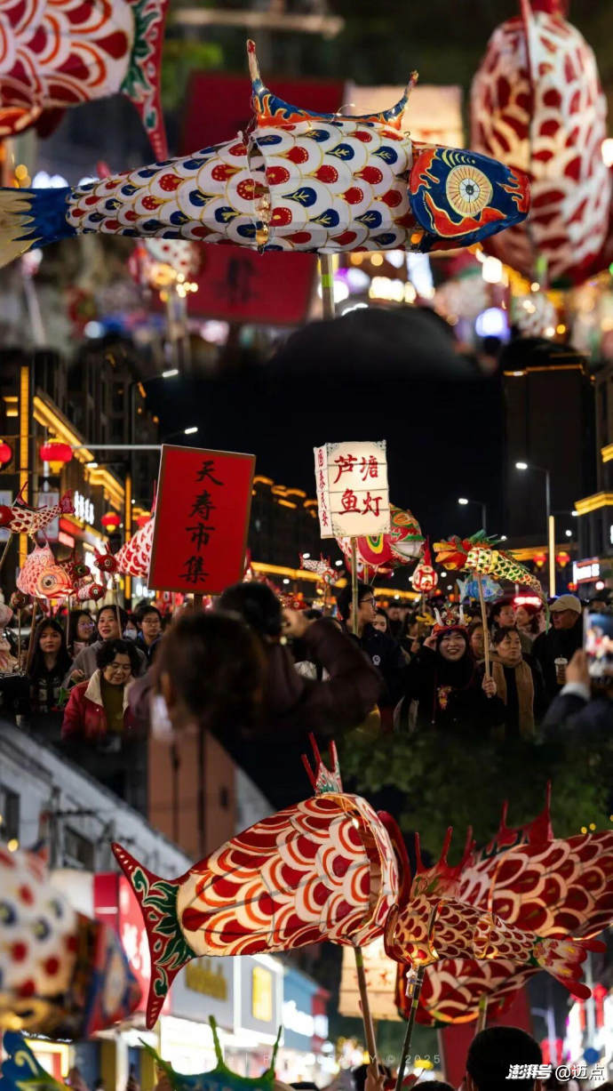 平日里难得一见的舞龙、舞鱼灯轮番上阵,就连本地人都直呼“这阵仗比过年还热闹”,情绪价值一整个拉满。