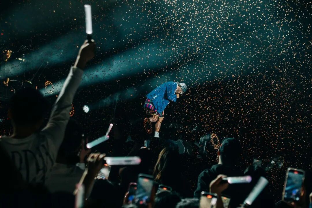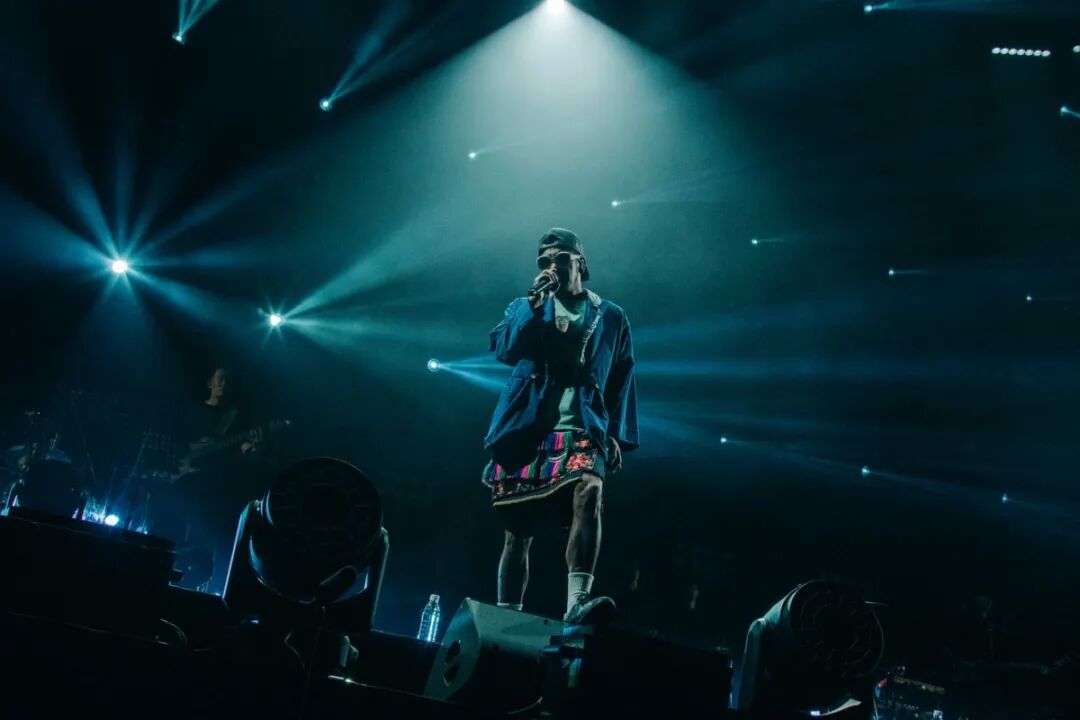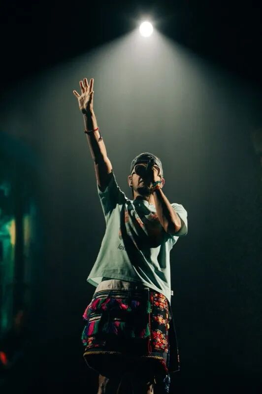 舞台上我也不会讲太多话,用音乐表达就好。其他歌手可能要多说话来互动,但我就是一直唱,中间可能只说“大家好,我是阿岳”,或者分享一些突然冒出的、很无关紧要的想法,比如“今天我袜子穿错了”或“袜子破了个洞”这种。那些很大的道理,我不太会讲。