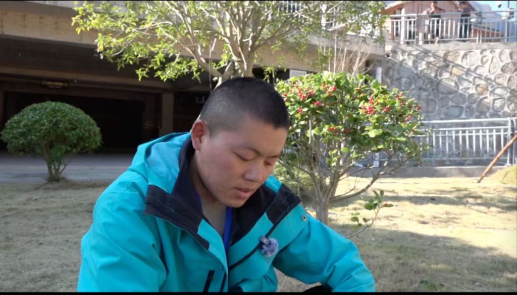 11月中旬,他搬到一个山洞里,底下垫了很厚的草,把外面都围了起来。那时降温,山上可能都结冰了,但他一直没有生起火,每天就吃梨子、猕猴桃、黑山药。他的安全员睡不着,担心温度太低他会出事,每隔一个小时就过来问:“‘道友’你怎么样?”他都说没事,而且他在山里也能睡着。