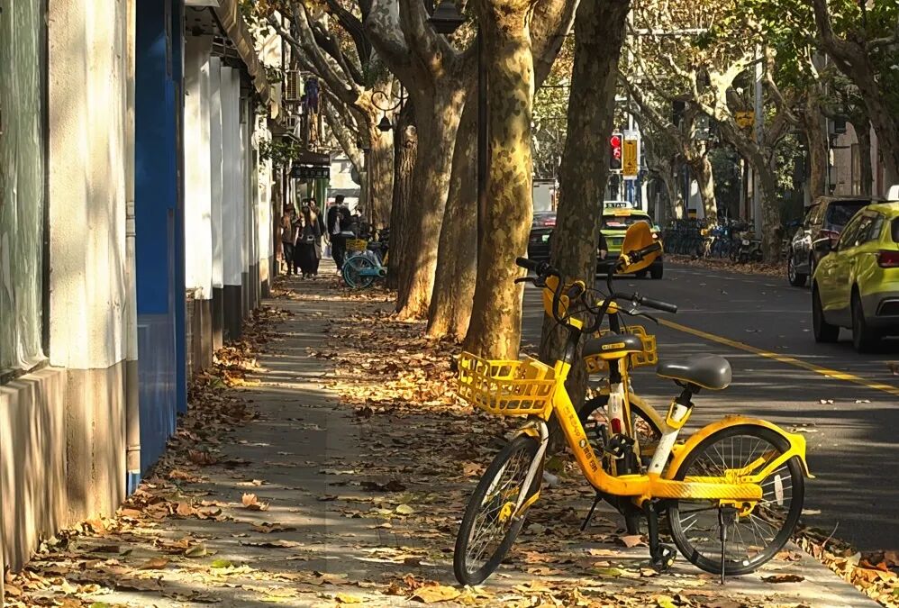 上海是一个被梧桐树包围的城市,气温渐渐走低,眼见得道路两旁的梧桐树也由绿泛黄,片片皆秋色。