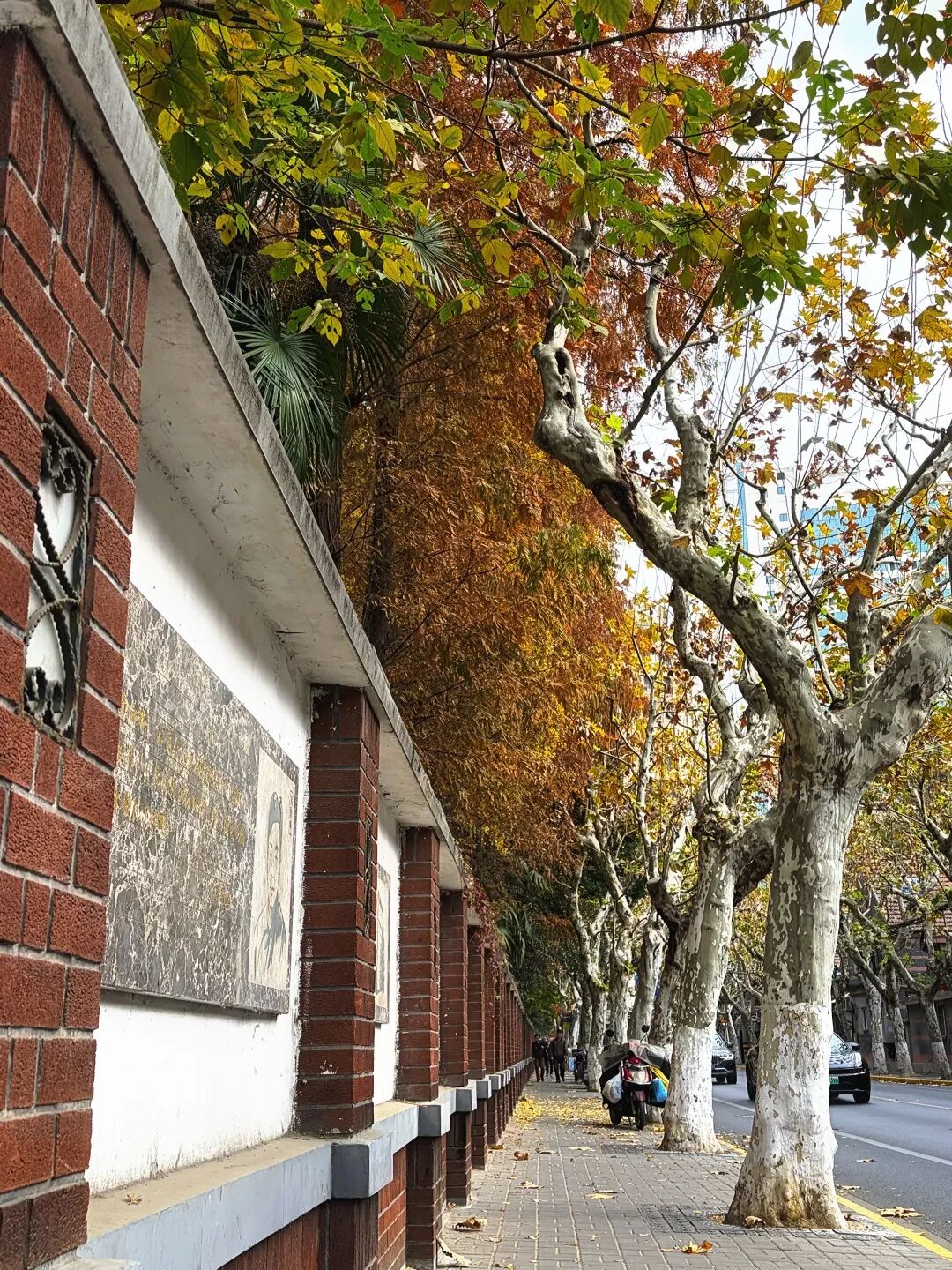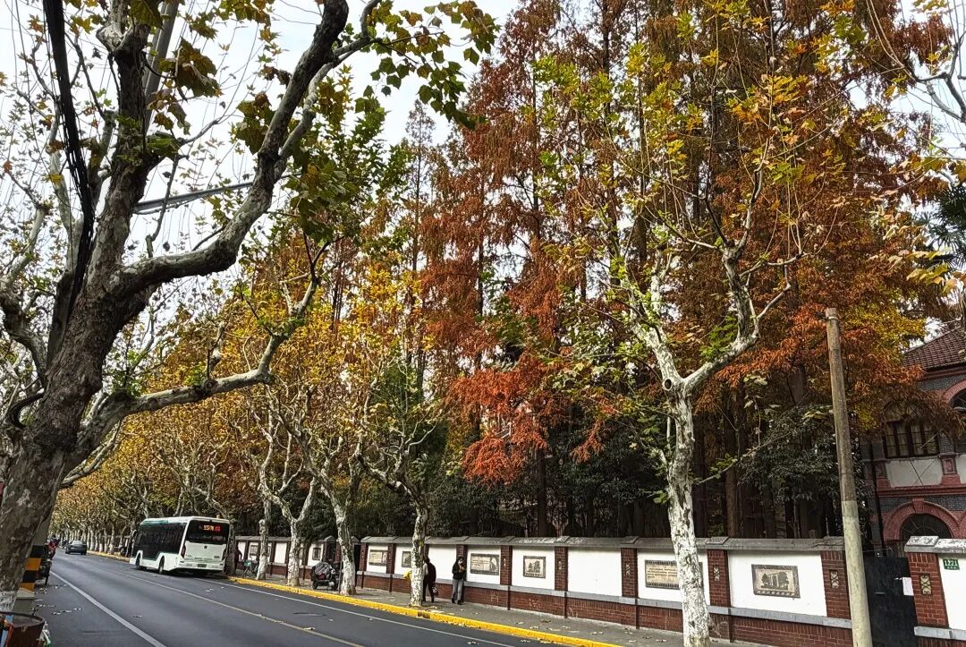 漫步在这条数百米长的林荫道,一幢幢建于上世纪二三十年代、造型各异的花园小洋房随时吸引着目光。鲁迅、郭沫若、曹聚仁等众多文化名人曾在溧阳路周边居住生活,打卡秋景的同时,也令人不禁追抚这里曾经的历史印记和海上传奇。