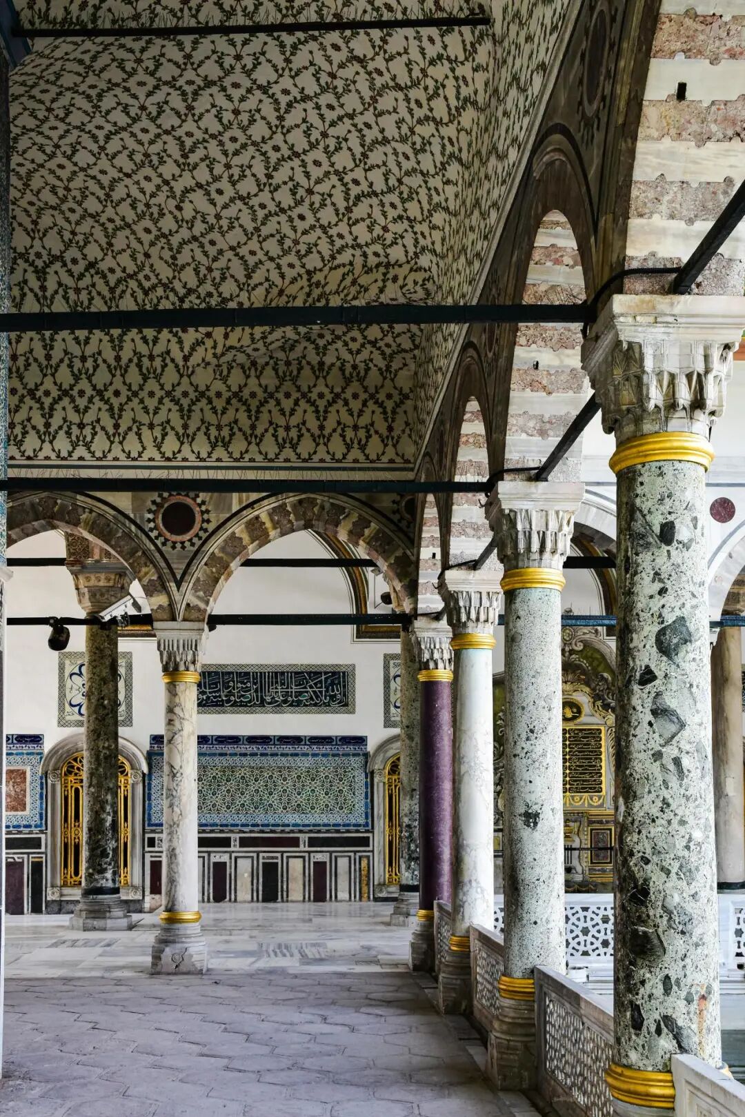 奥斯曼展区设在美术馆四楼,奥斯曼是历史上的存在的跨越亚非欧三大洲的帝国,这次展览以土耳其与埃及的展品为主,因此展厅里搭建了从伊斯坦布尔的宫殿和庭院中提取的拱廊元素,并复刻了土耳其与埃及两个代表性的复原陈列室来做一体化的展陈。