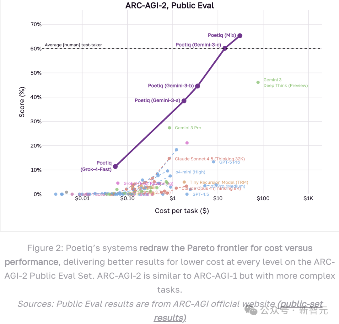 如上图所示,Poetiq系统在ARC-AGI-2半私有评估集上创下新纪录。