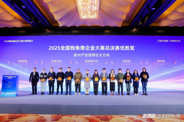 本次总决赛历时四天,最终有近140家经两轮专家评议推荐而来的入围企业,在现场按规定流程顺利完赛,围绕新兴产业培育壮大、未来产业前瞻布局两大方向,以及新一代信息技术、高端装备、新能源汽车、商业航天、低空经济、深海科技、新能源、新材料、绿色环保、未来制造、未来信息、未来材料、未来能源、未来健康的14个领域展开精彩角逐。经过现场50余位评委针对完赛企业在创新能力、成长趋势、融合业态、估值潜质,以及财务关键指标等维度方面的分组集体评议,最终推荐72家企业获得2025全国独角兽企业大赛总决赛奖项。其中,58家企业获得总决赛优胜奖,14家企业获得技术创新、商业价值、评委推荐共三种类型的总决赛专项奖。
