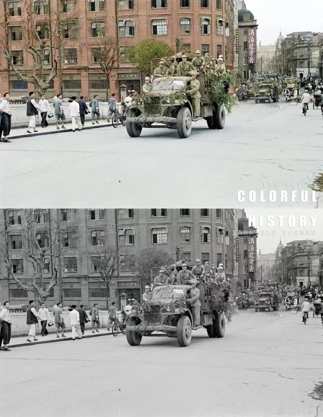 经过修复上色的照片里,原本灰暗的人和景都变的变得鲜活真切,曾经被淹没在阴影中的细节得以清晰重现,老照片因而拥有了更强烈的视觉冲击和情感力量,直抵人心。