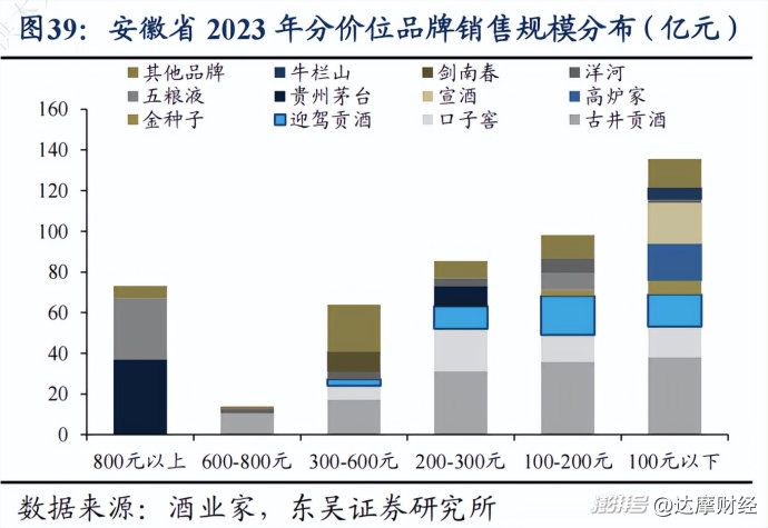长期以来,徽酒注重渠道和营销,习惯通过买断酒店、商超等方式抢占市场,“东不入皖”的俗语因此出现。从一家小酒厂成长至“徽酒榜眼”,迎驾贡酒的成长同样依赖类似战术。这也导致很长一段时间里,迎驾贡酒的产品以150元以下的中低端白酒为主。