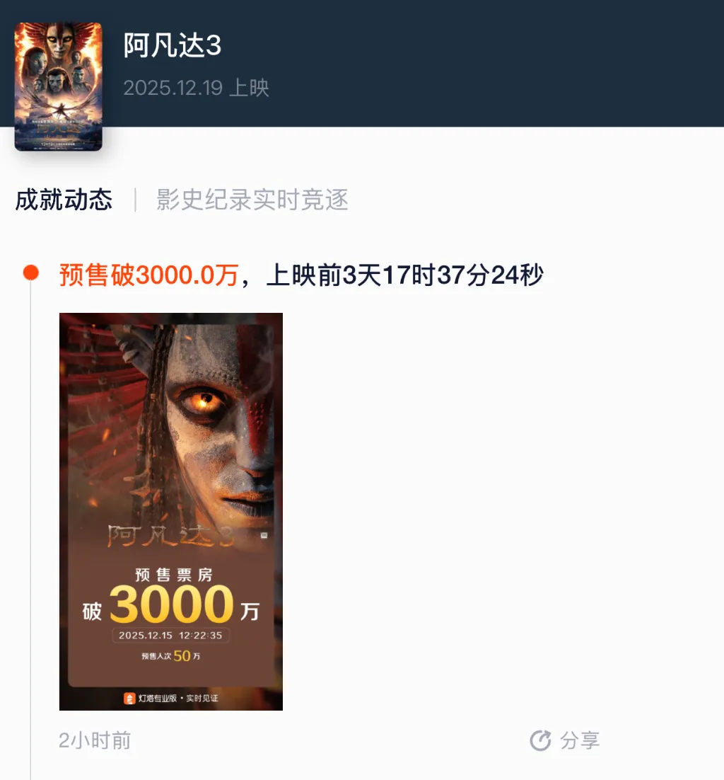 原标题:《《阿凡达3》预售票房破3000万,有影院票价超200元》