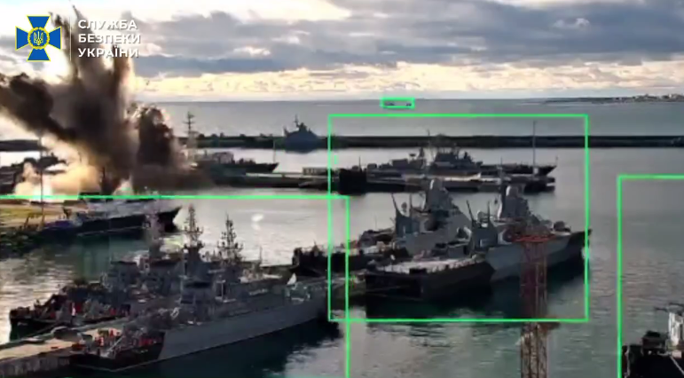 乌国家安全局公布的炸毁俄“华沙女人”级潜艇视频截图