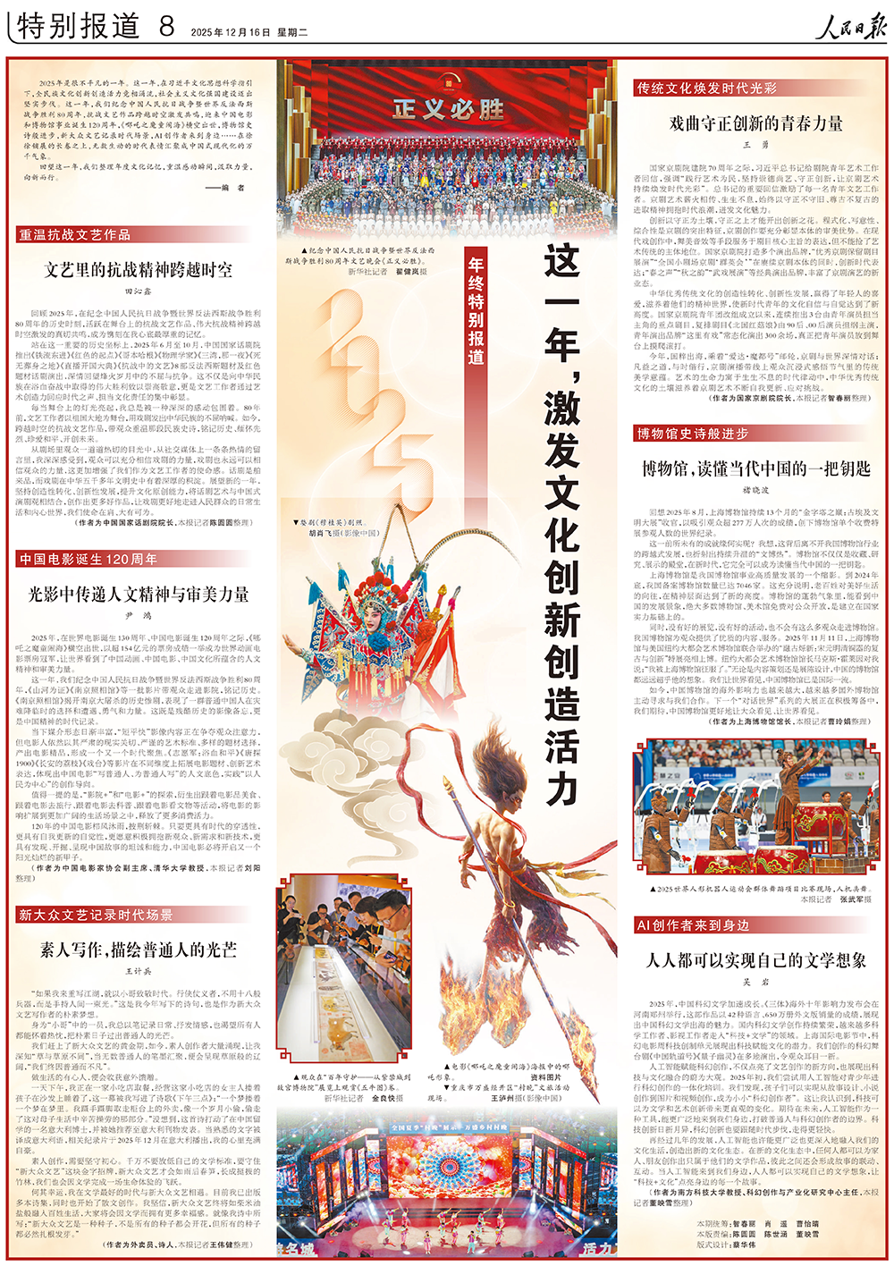 抗战文艺作品、外卖员诗人、AI创作,人民日报整版盘点年度文化记忆