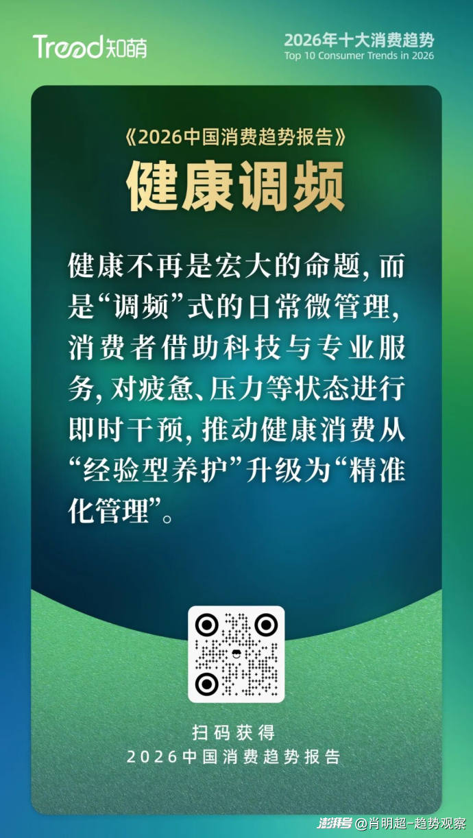 健康不再是宏大的命题,而是“调频”式的日常微管理,消费者不再满足于事后补救,而是借助科技工具与专业服务,对精力、情绪、睡眠、代谢等指标进行主动、精细的即时干预,让健康消费从“经验型养护”升级为“精准化管理”。