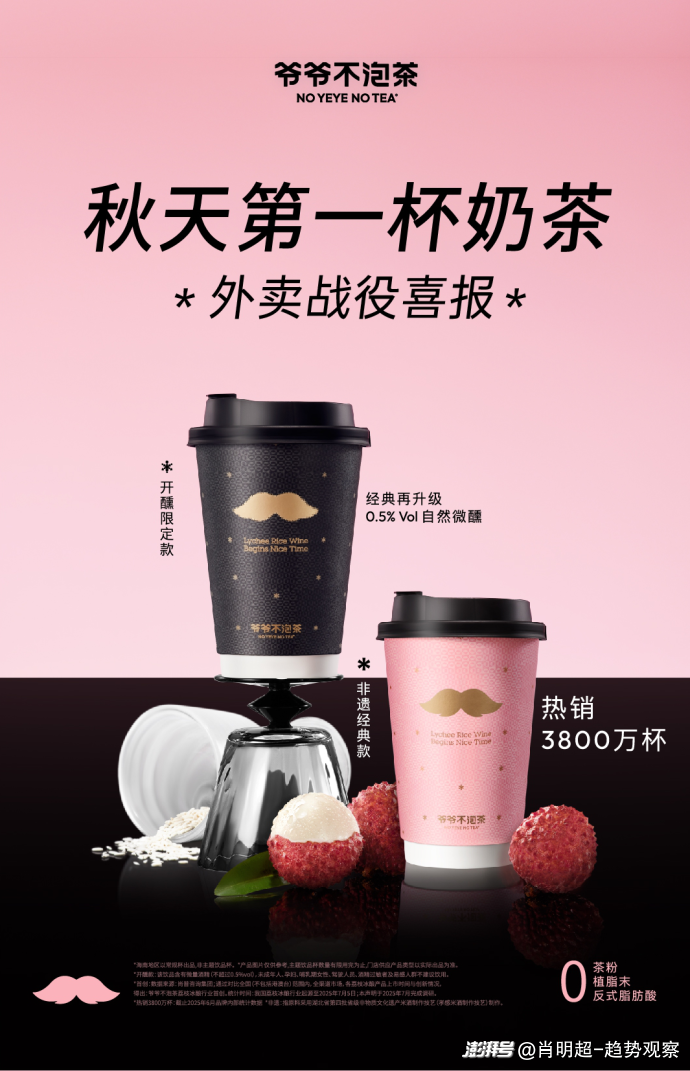 在这场年复一年的集体仪式中,来自湖北的新茶饮品牌爷爷不泡茶,凭借对情绪节点的精准捕捉与系统运营,成功将这一社交符号转化为品牌增长动能,成为2025年“秋日仪式”的重要承载者。一方面,深耕传统食饮文化,将其与现代茶饮工艺融合,打造出兼具文化辨识度与口感记忆点的产品,为情感承载提供了扎实的物质载体。另外一方面,主动融入由微博生态孕育的年度社交仪式,通过联动头部达人直播等策略,将一杯茶饮从单纯的消费品,升维为连接人际情感、唤醒城市记忆、标记季节更迭的社会化情绪媒介。爷爷不泡茶的案例表明,在“日常高光”趋势下,品牌的价值不仅在于提供产品,更在于主动创造或赋能那些能让消费者感到“被点亮”的微小仪式。