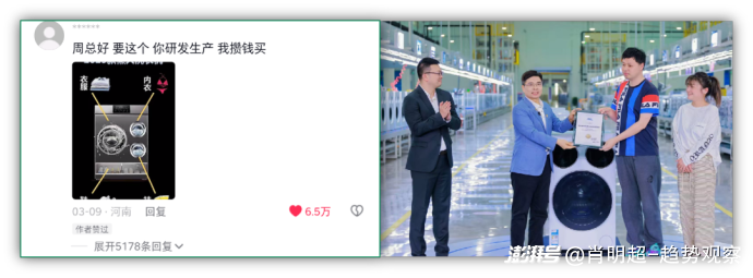第二层:价值共识:让人认同并建立价值共鸣点。当品牌的价值主张与时代情绪和公众期待同频,便能引发深层认同。以华为“遥遥领先”为例,这个在微博上被反复讨论、甚至演化为全民话题的表达,成为品牌被联想到的超强符号;海尔通过让董事局主席周云杰化身IP、直接回应用户,将品牌形象从冰冷的“家电制造商”扭转为有温度、愿倾听的 “生活共创伙伴”,回应网友需求,推出的“懒人三筒洗衣机”,正是价值共识的具体产物。