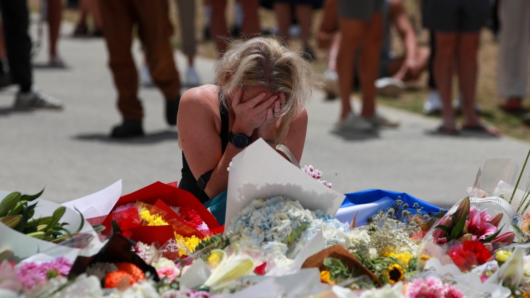 12月15日,在澳大利亚悉尼,一名女子在邦迪滩枪击事件现场附近悼念遇难者。新华社 图