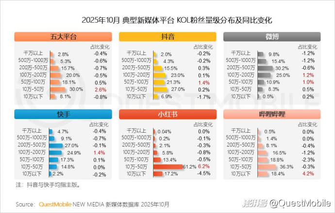 2.1 各平台KOL粉丝量级结构,映射了其迥异的生态特性与增长阶段