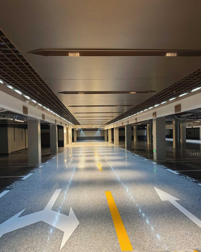 申宸院将品质感的体验不仅聚焦于社区内,更是前置到归家的途中,其地下车库,突破了传统地库简陋与乏味的格局,以彩石美学与高强度金刚砂打造出酒店大堂般的璀璨空间,兼具优异的耐磨与防滑性能。柔和的灯光系统、清晰的动线引导,让归家之路从容而充满仪式感。