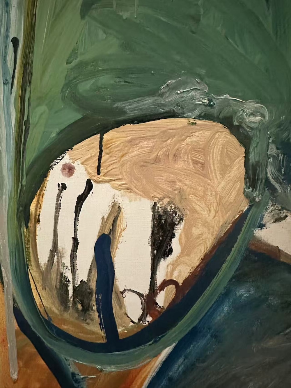 《坐着的老年男人》(手部局部),能看到艺术家创作的痕迹