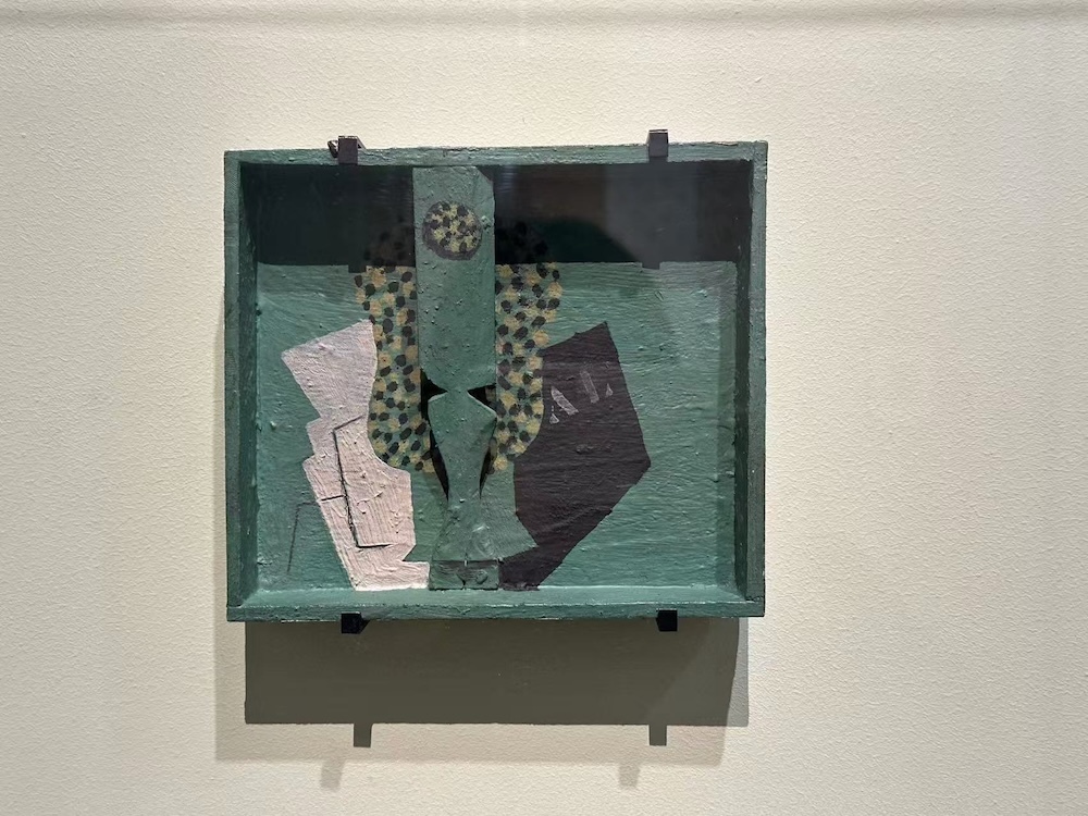此外,在“拼贴与组合”的展厅,有一件由木头、纸板制作的小型作品《玻璃杯与报纸》,是毕加索非常私人的、实验性的尝试。介于二维与三维之间,形成了一种介乎绘画与雕塑之间的混合形态。