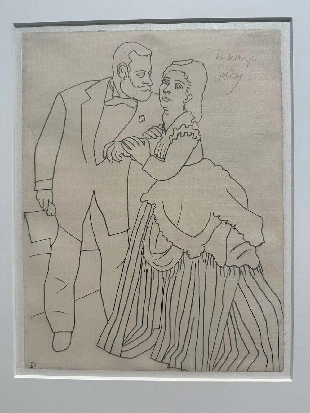 展览现场,毕加索1919年铅笔作品《致敬奥古斯特·雷诺阿》