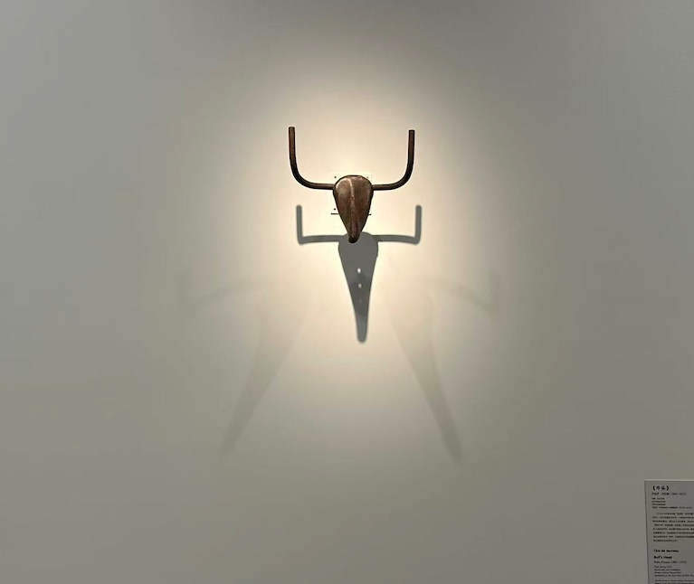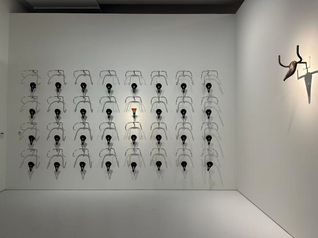 展览一开始,就出乎大部分人的意料,一件由自行车鞍座和把手焊接而成的《牛头》,与一墙当代鞍座和把手呼应。