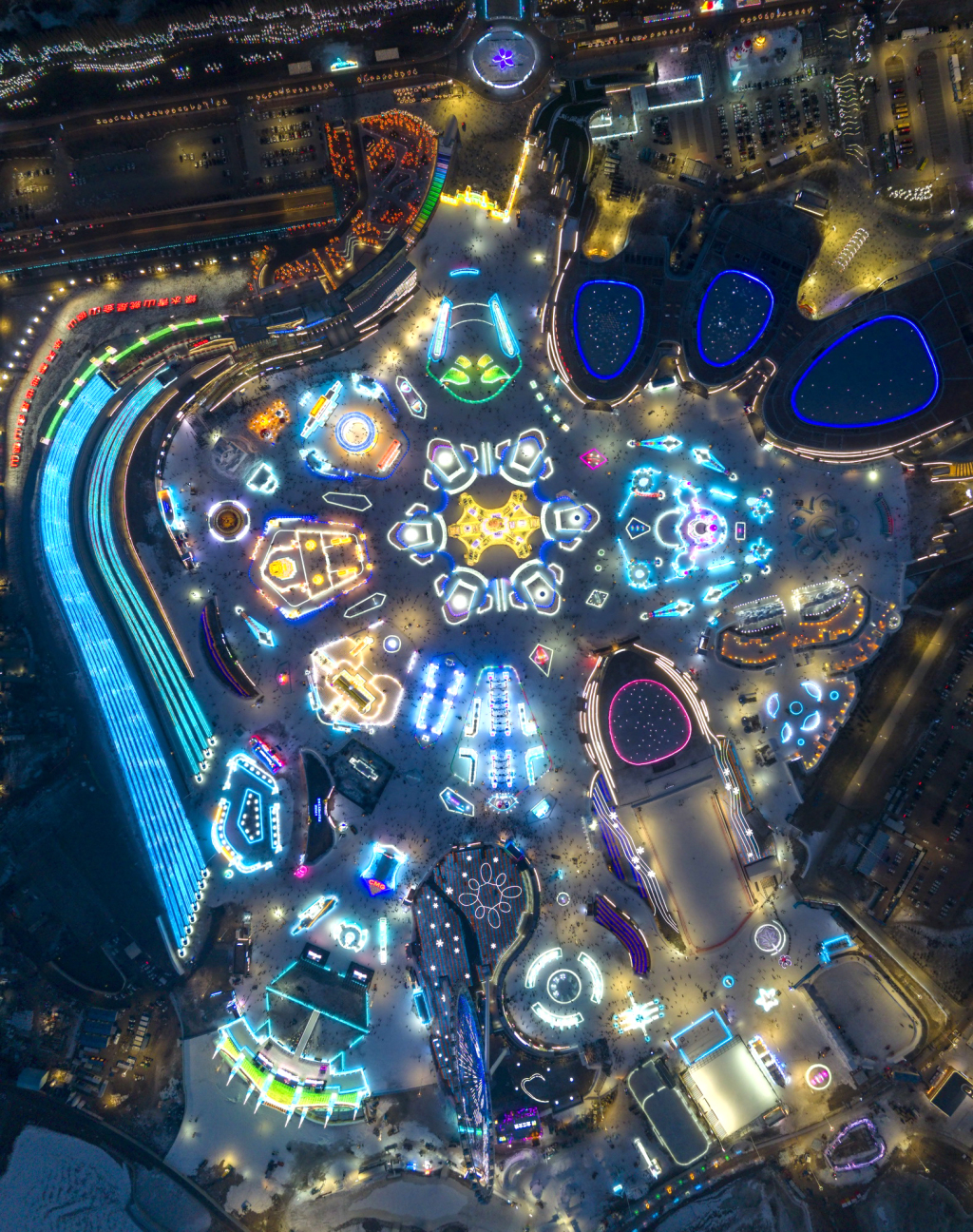 “冰雪王国”里,还汇聚了国内外多地的特色冰雪景观,中国红始终是贯穿其中的温暖底色。