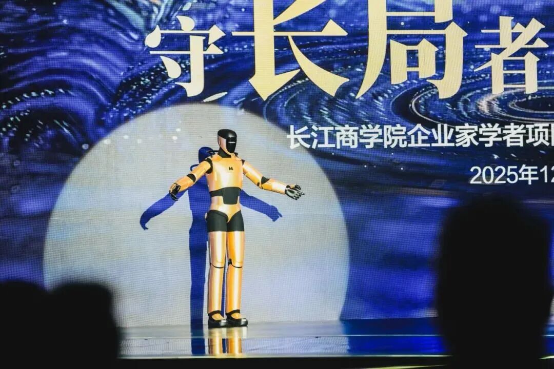 开学典礼由AI智能伙伴的互动开场拉开序幕,科技感十足。该产品由长江DBA十三期班同学张海星及其团队研发。张海星曾由埃隆·马斯克亲自面试并招募,担任过特斯拉中国设计中心负责人,后创办上海矩阵超智系统集成有限公司。