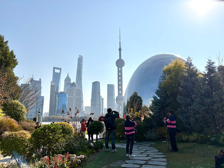 12月19日,游客在北外滩滨江绿地小巨蛋拍照。 澎湃新闻记者 陈悦 图