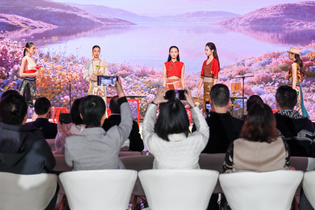 模特穿着品牌服装在现场走秀。澎湃新闻记者 朱伟辉 图