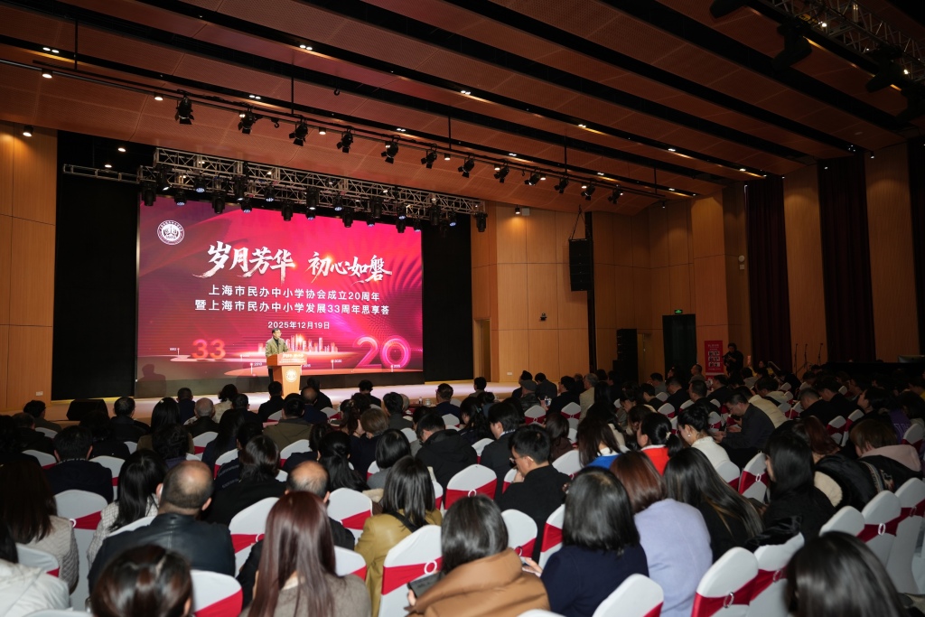 2025年12月19日,上海市文来中学初中部大礼堂,“上海市民办中小学协会成立20周年暨上海市民办中小学发展33周年思享荟”举行。本文图片均为 主办方 供图