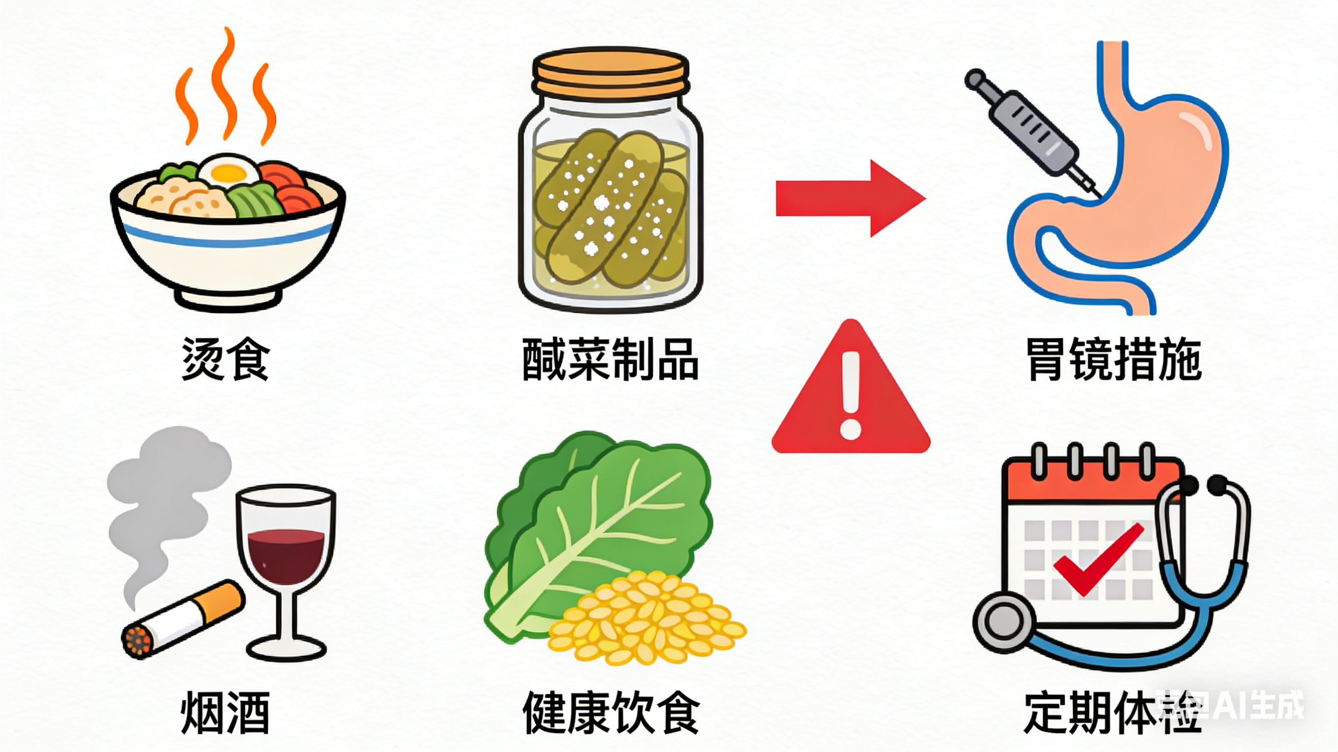 回溯这11例晚期病例,背后藏着共性的不良生活习惯,也契合了食管癌的高发诱因。医生复盘发现,这些患者多有“吃得烫、口味重、吃得快”的饮食特点,部分人还长期吸烟、饮酒。高温食物如热汤、热粥、火锅等,会直接灼伤食管黏膜,反复修复过程中细胞易发生基因突变;高盐饮食、腌制食品(如咸菜、腊肉)中的亚硝酸盐,是明确的致癌物质,会持续刺激食管黏膜;进食速度过快则会增加食管的物理摩擦损伤,降低黏膜的防御能力;而烟草中的尼古丁、酒精会进一步削弱食管黏膜的保护屏障,加速癌变进程。