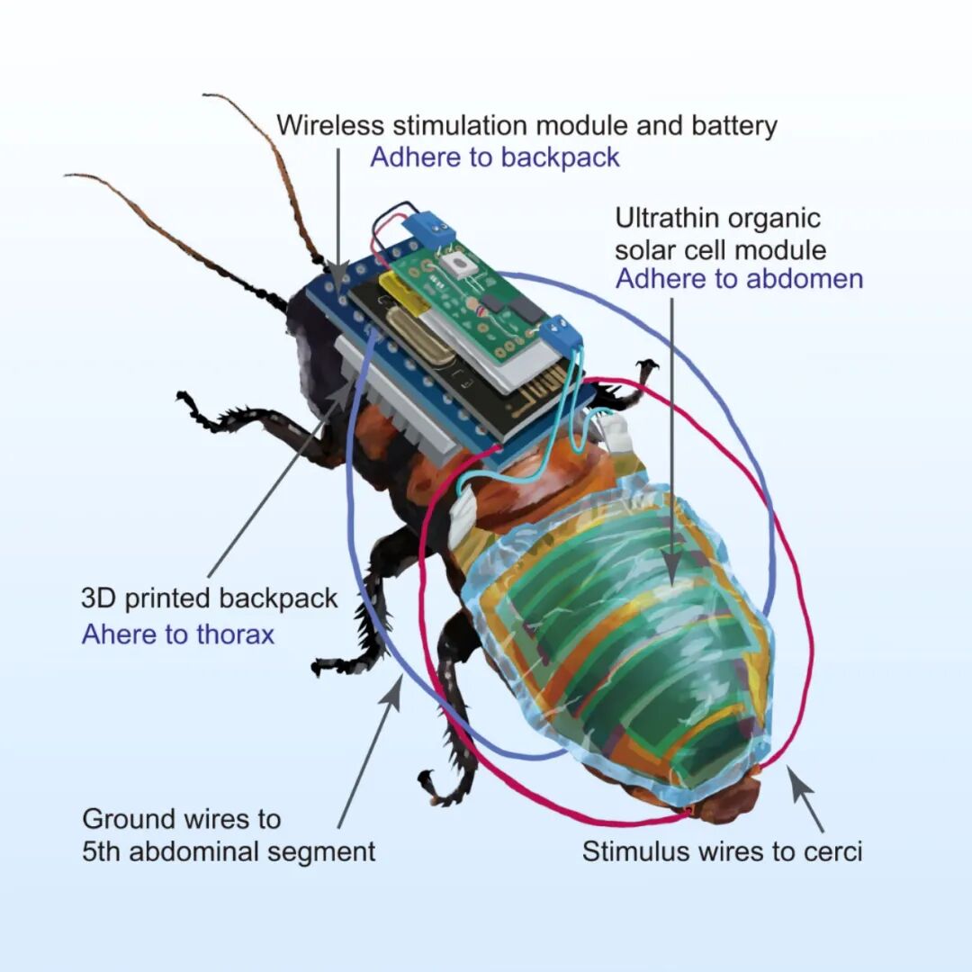 早在20年前,一些来自新加坡和日本的研究人员就在开发“半机械昆虫”,也就是通过向活体昆虫的神经系统植入设备来远程控制它们。早期的工作成功实现了远程控制甲虫,目前已扩展到马达加斯加发声蟑螂身上。