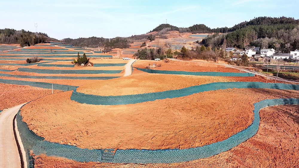 2025年1月8日,湖北十堰,房县门古寺镇叶家河小流域水土治理项目竣工,广域的水土流失坡耕地蝶变成“保土、保肥、保水”的“三保”水平梯田。视觉中国 资料图