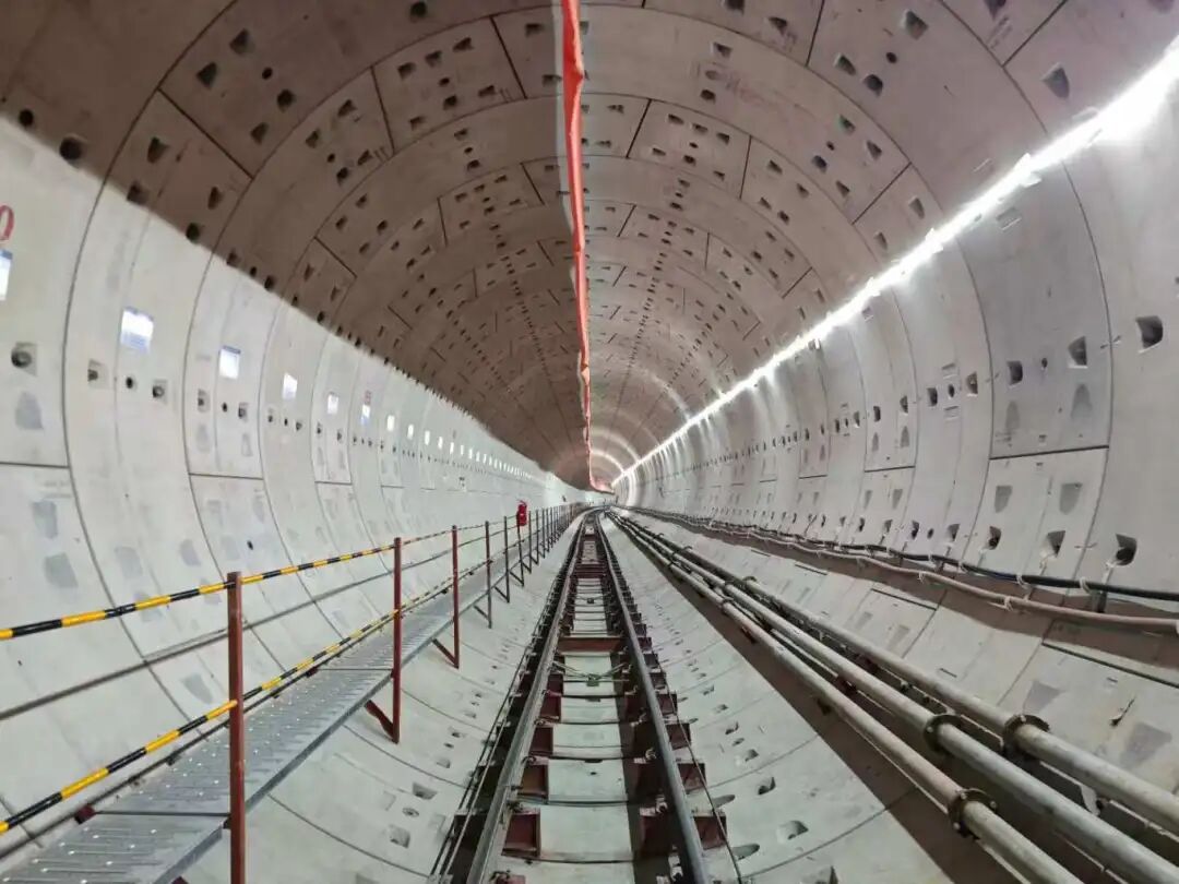 春潮商业街站至旺庄东路站盾构区间面对复杂地质及下穿管线难题,采用“精准避让+防护加固”策略,提前开展地质勘察与风险评估,绘制详细管线图,精准控制出土量与注浆参数,结合自动化设备动态调整方案,保障周边建构筑物与管线安全。