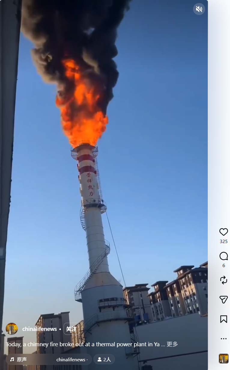 明查|这是“中国工厂排放有毒烟雾”?实为热力烟囱意外起火