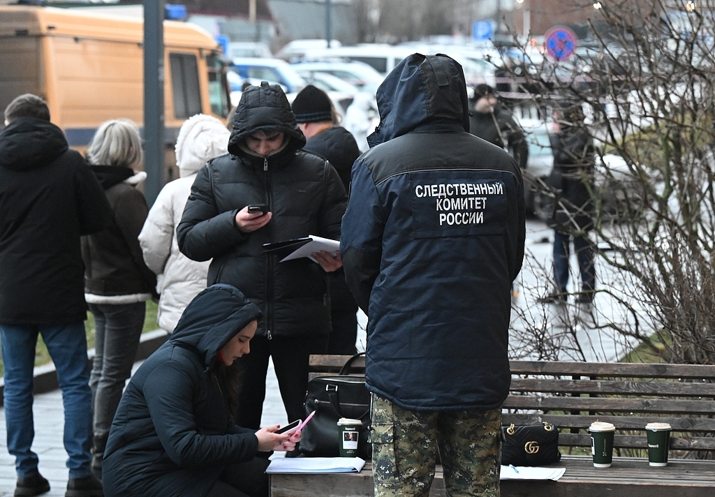 当地时间2025年12月22日,俄罗斯莫斯科,调查人员在汽车炸弹袭击现场工作。