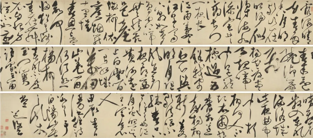 对南京收藏界颇为熟悉的一位艺术界资深人士对澎湃新闻介绍,其实此前陆挺因为出现资金短缺,已将仇英《江南春》图卷在内的8件书画作品,抵押给南京十竹斋以换取数千万元借款,后因陆挺逾期无力支付本金和利息,十竹斋便依照协议,对这8件抵押作品进行自主处置,整体转让给一位宁波买家朱光。该宁波买家朱光将八件书画中的一件明代陈淳《草书唐诗卷》送拍北京保利,并在2023年保利春拍中以3500万元成交,而庞家旧藏《江南春》图卷也正是这位宁波人朱光送拍。