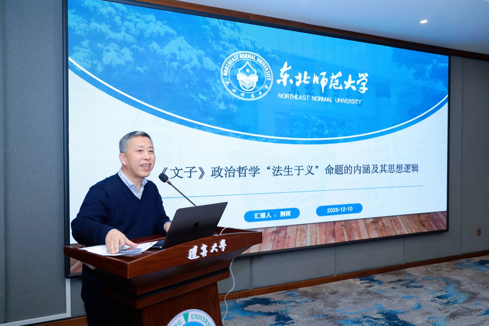 东北师范大学荆雨教授以《〈文子〉政治哲学“法生于义”命题的内涵及其思想逻辑》为题,指出应重视中国传统政治哲学中“敬天、明德、保民”的原发性与原初性。在战国中后期法治主张与思想融合背景下,《文子》提出“法生于义”命题,“法生于义”与“义生于众适”“众适合乎人心”一起,在其思想内部合乎逻辑地展开了关于法之性质与内涵的整体主张。