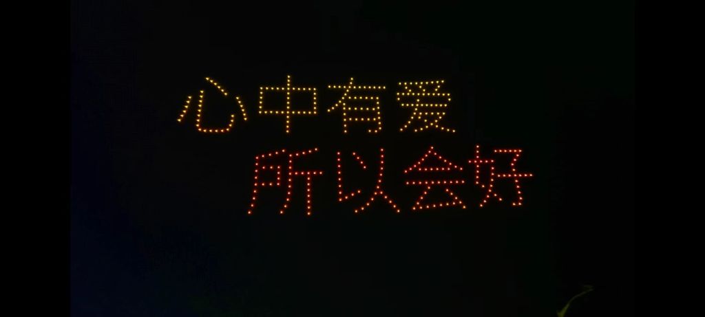 “爱好”20周年无人机灯光秀。爱好,即“因为有爱 所以会好”。 本文图片除标注外均为 受访者供图