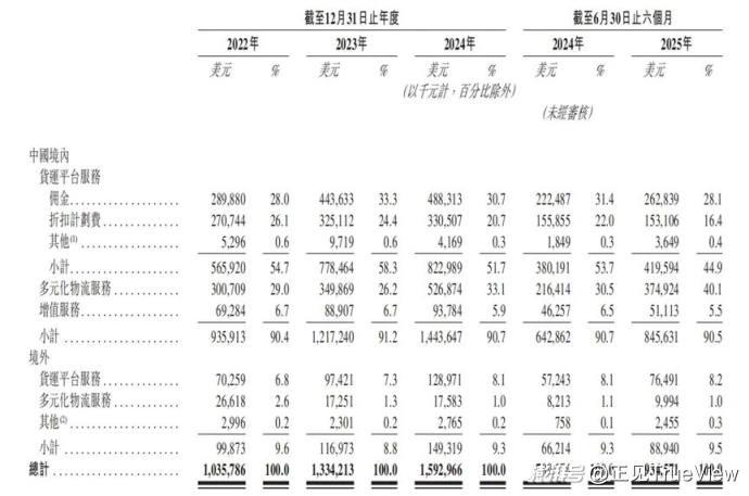 招股书显示,2025年上半年货拉拉全球GTV达59.67亿美元,同比增长17.7%;2024年全球GTV为111.37亿美元。在中国内地货运平台服务收入中,佣金占比从2022年的51.2%升至2024年的59.3%,2025年上半年增至62.6%。