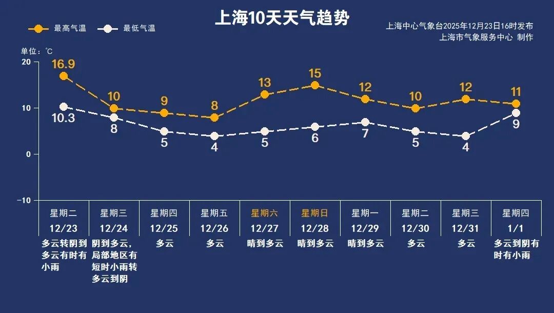 受冷空气影响,申城周四和周五全天的气温都被压制在个位数,最低在4~5℃,郊区或在冰点附近,最高气温仅8~9℃。周六白天起开始回暖,预计双休日最高气温可攀升至13~15℃。这周三能否跨入气象意义上的冬天,关键就在于周日的气温了。下周一前后又有一股冷空气东移南下,受此影响,申城的最高气温略有下降,气温频繁起伏,提醒大家关注气温变化,谨防降温可能导致的呼吸道和心脑血管疾病。