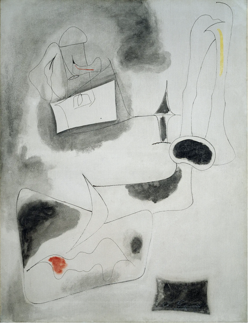 纽约和墨西哥一样,在战争期间也吸引了众多超现实主义者的到来。在展览中,杰克逊·波洛克、阿道夫·戈特利布和马克·罗斯科等艺术家的早期作品尚未形成他们标志性的风格,但都清晰地展现了超现实主义对当地艺术家的影响。此外,阿希尔·戈尔基创作于1946年的精美画作《裸体》(Nude)亦是如此。