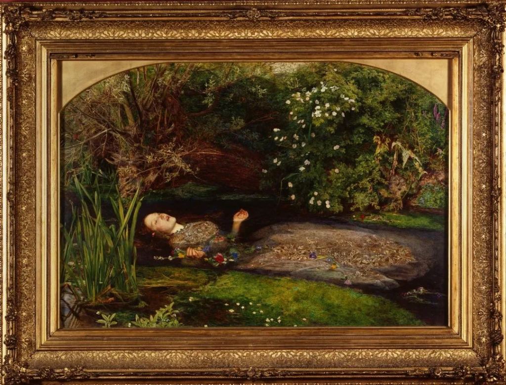 浦东美术馆开馆展“光”,展出来自英国泰特美术馆藏约翰·埃弗里特·米莱,《奥菲莉娅》,1851—1852年,布面油画(泰特所有,1894年由亨利·泰特爵士赠送)