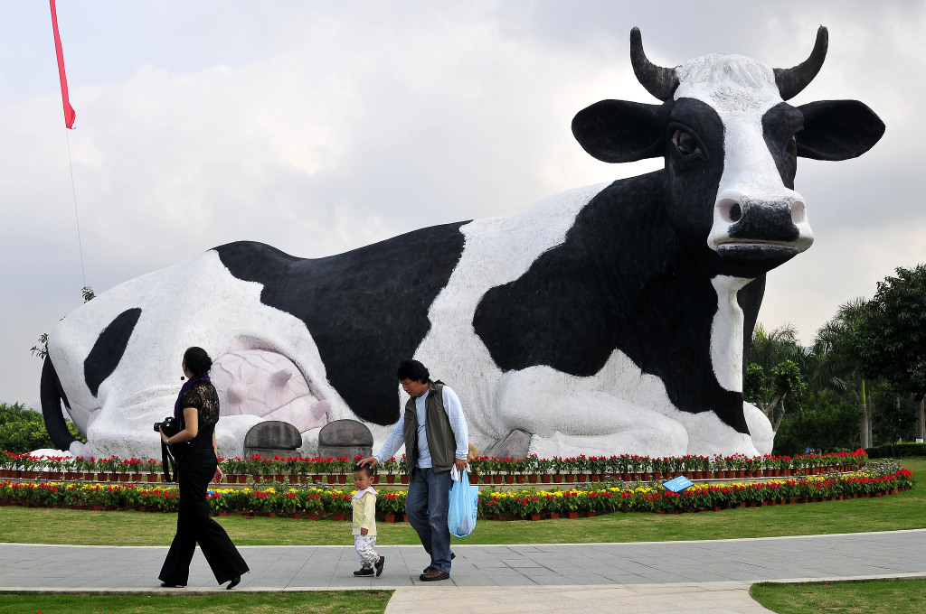 2010年2月27日,深圳光明农科大观园,晨光奶牛示范场的奶牛雕塑。视觉中国 图