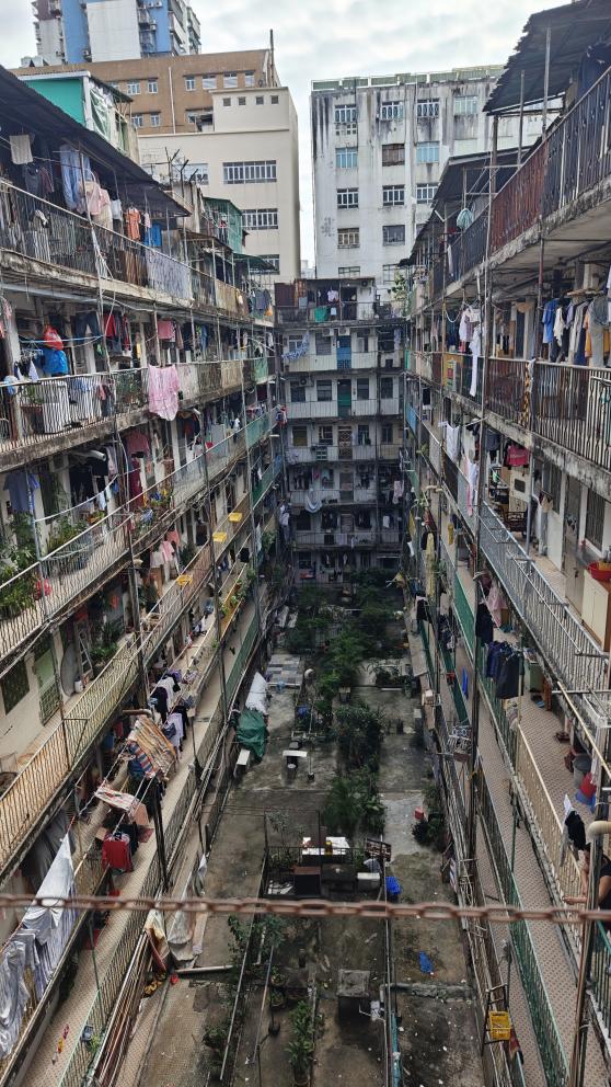 红姐:年轻人结婚有能力后,大都搬到有电梯、环境更好的地方去了,这里留下的多是老人和小孩。这在港澳地区很普遍。新美安在1976年建成时曾是豪宅,80年代周边还是铁皮屋和菜地。90年代这里变成了制衣厂聚集的工业区,我 1999年来这里打工时,到处都是工厂。后来产业转型,工厂搬走了,现在变成了这种混合居住的状态。