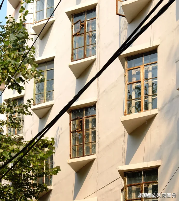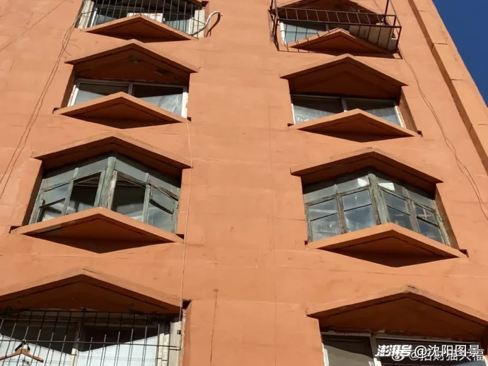 网友@招财猫大福 发来的沈阳怒江小区改革开放后新建住宅楼也有三角飘窗,很多已经重新安装铝合金和塑钢窗,改变了三角造型。