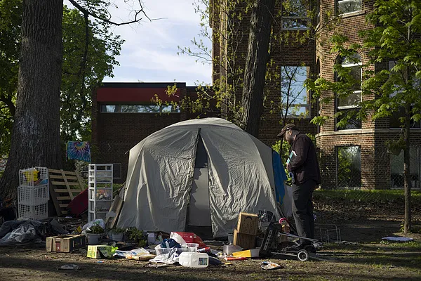 美国芝加哥:官员查看无家可归者营地 视觉中国
