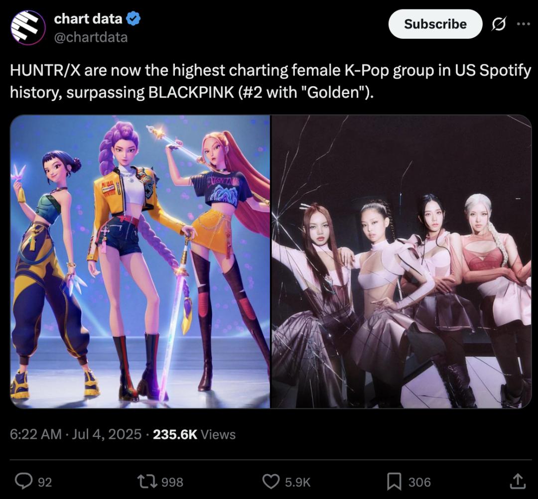 今年AI数字人产量大爆发,Netflix推出女团HUNTR/X和男团Saja Boys,日本宣布采用新一代AI驱动的虚拟主播Kizuna AI绊爱回归。