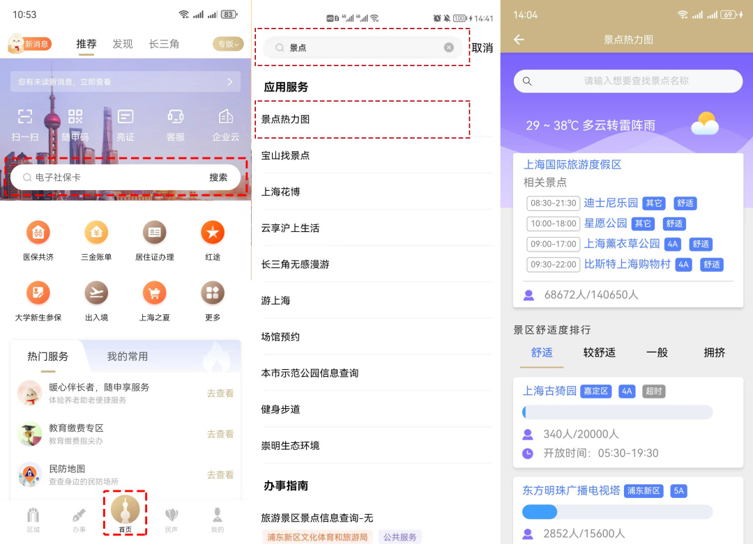 景点预约完成,出行前再同步使用“随申办市民云”APP的“景点热力图”服务,还可查询到景点实时客流量情况,有效避开人流高峰,助你提前了解地面交通状况,合理规划旅游线路和时间!