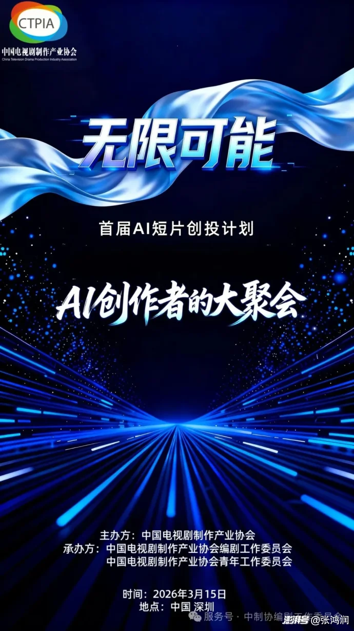 为积极响应国家关于推动文化产业与数字技术深度融合的号召,引领剧集产业智能化转型,2026中国电视剧制作产业大会暨第十一届中国(深圳)国际电视剧节目交易会特举办首届“无限可能”AIGC短片创投计划特别单元。
