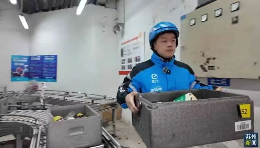 “换位跑一次”行动中,苏州相城经开区社会事业局副局长张亥秋体验外卖员的工作、生活。苏州新闻 图