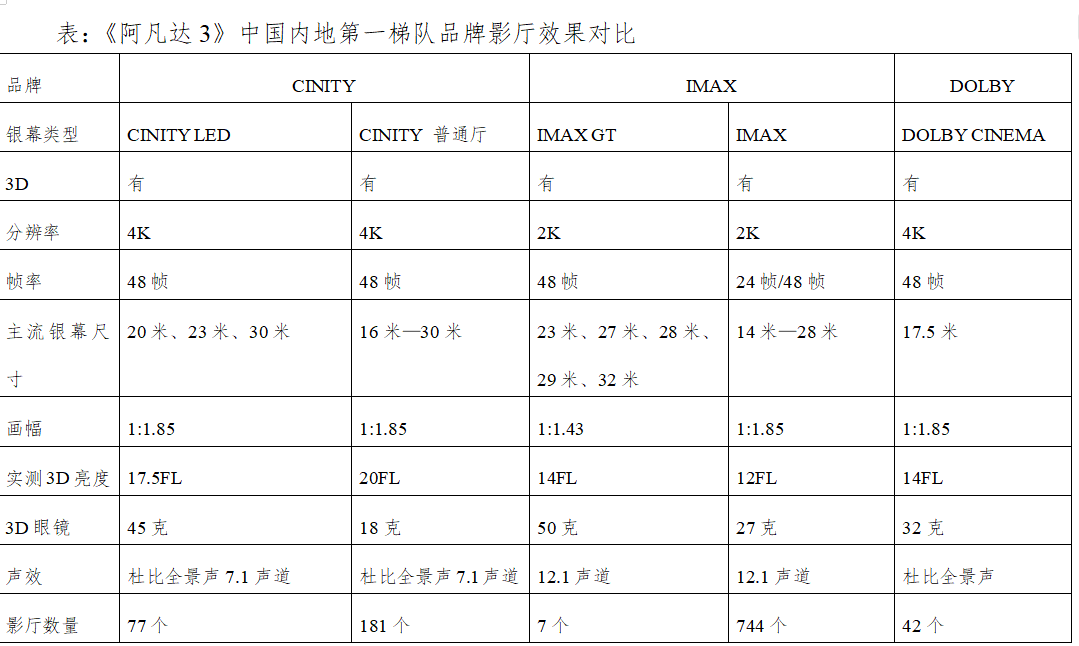 详细来说,《阿凡达3》选影院的几个简单指标: